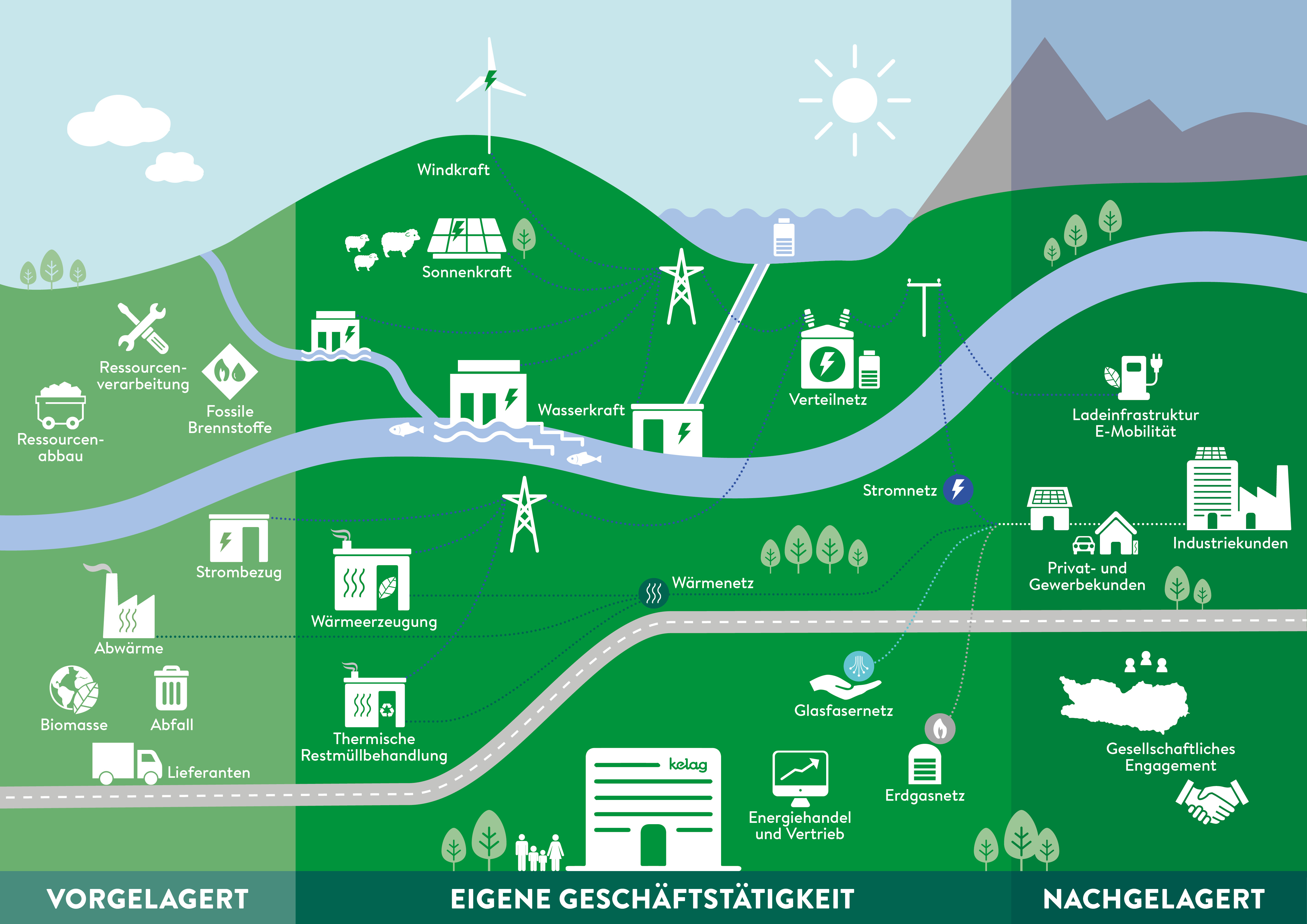 Das Geschäftsmodell und die strategische Ausrichtung des Kelag-Konzerns basieren seit mehr als 100 Jahren auf erneuerbaren Energien. Mit nachhaltigen und energieeffizienten Lösungen leisten wir einen wesentlichen Beitrag zur Dekarbonisierung der Gesellschaft. Wir verfolgen konsequent den Weg zu Net Zero bis 2040 gem. dem Pariser Klimaabkommen.