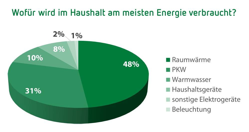 Die Verteilung des Energieverbrauchs in einem durchschnittlichen österreichischen Haushalt.